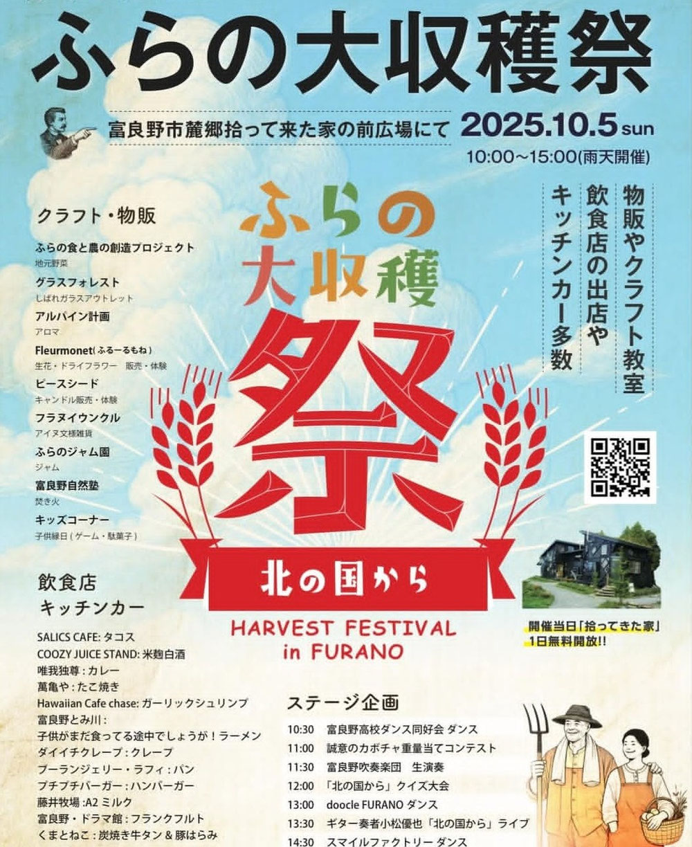 家族総出でお手伝いします。ぜひ遊びに来て下さいね。 てるてる坊主さん、よろしくお願いします! https://furano-harvest.jp/ ↑詳しくはコチラ。